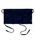8 oz., Twill; 55% organically grown cotton, 45% recycled polyester; Three front pockets, each 6" w x 6.5" h; Extra long self fabric ties, 38" long on each side; Apron measures 10" h x 19.25" w; Printed flag tag; Tear away label; Made in a SEDEX SMETA audited factory;